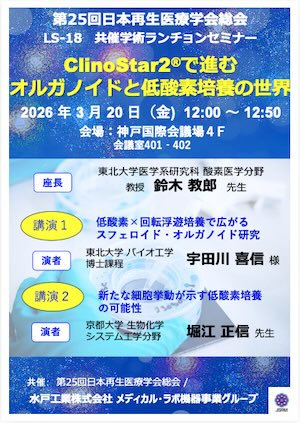 ※20日に弊社共催ランチョンセミナー「ClinoStar2®で進むオルガノイドと低酸素培養の世界」を行います。